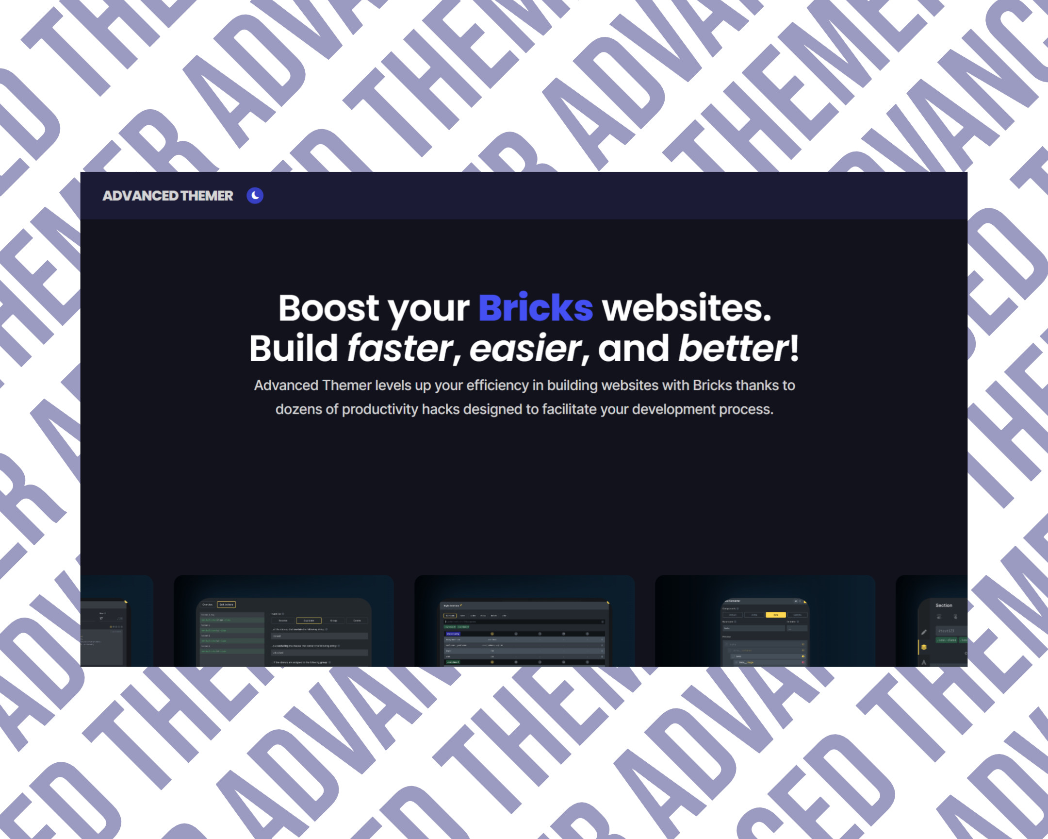 Meet Bricks. An innovative, community-driven, visual site builder for WordPress. Empowering you to design unique, performant, and scalable websites. Code-free.